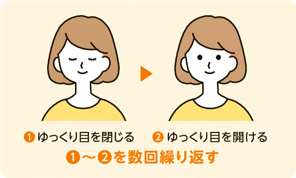 まばたきにより涙の分泌が促され、疲れ目やドライアイの予防につながります。見続けている状態から一時的に開放されるため、筋肉の緊張もほぐれます。仕事中や電車の中、お風呂の中でもできるケアです。
