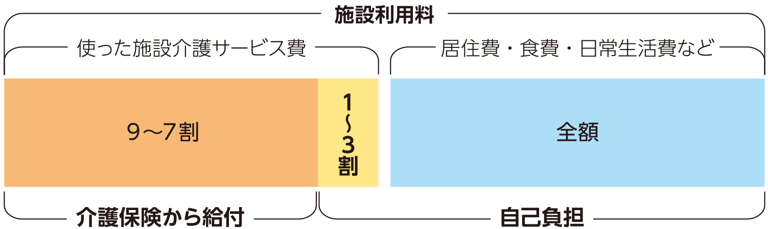 居住費(部屋代・光熱費など)、食費、日常生活費(日用品・理美容代など)は全額自己負担です。費用は施設によって異なるので、施設を選ぶ際にしっかり確認しましょう。